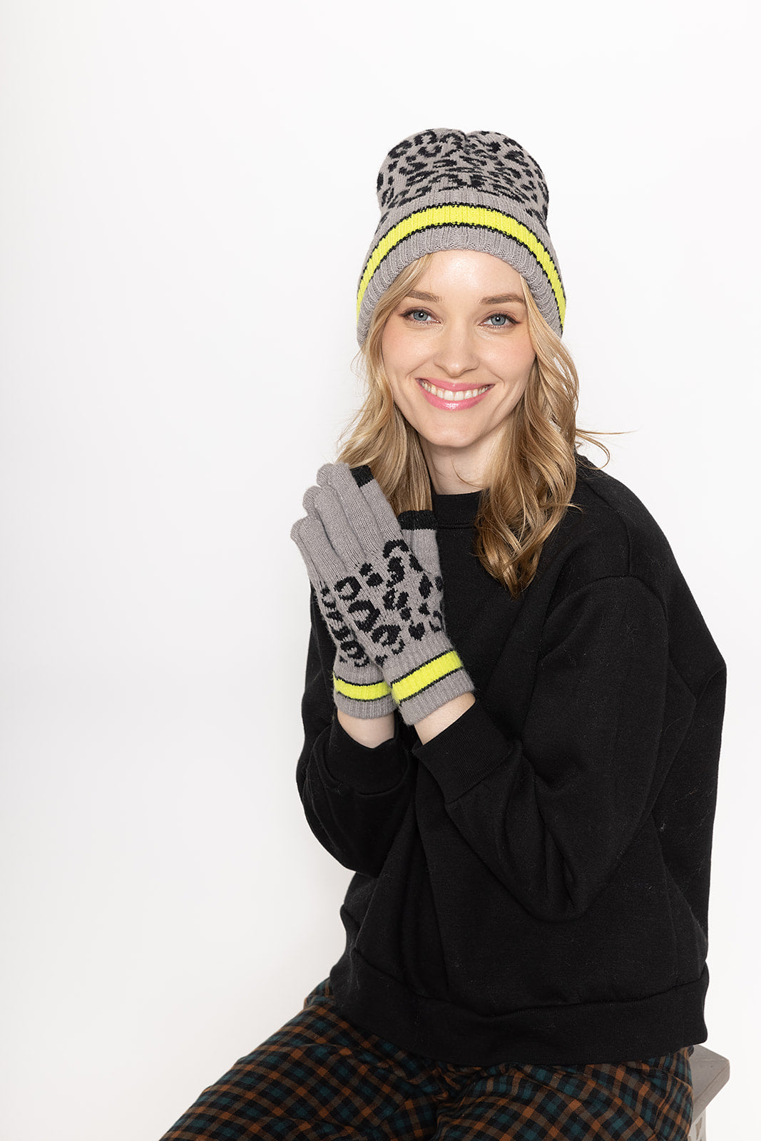 Leopard Beanie With Stripe Cuff