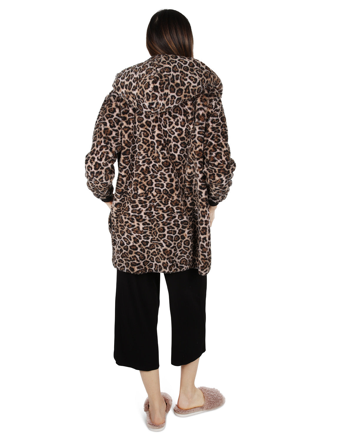 If you're going to lounge, then lounge in style! Our Women's Leopard Plush Hooded Cardigan is exactly what you want to be spotted in. This sassy apparel is ultra soft and stylish. Our bold leopard print is perfect for bundling up during a chilly winter's day, or for a lazy day in, this cardigan is the ultimate must have!