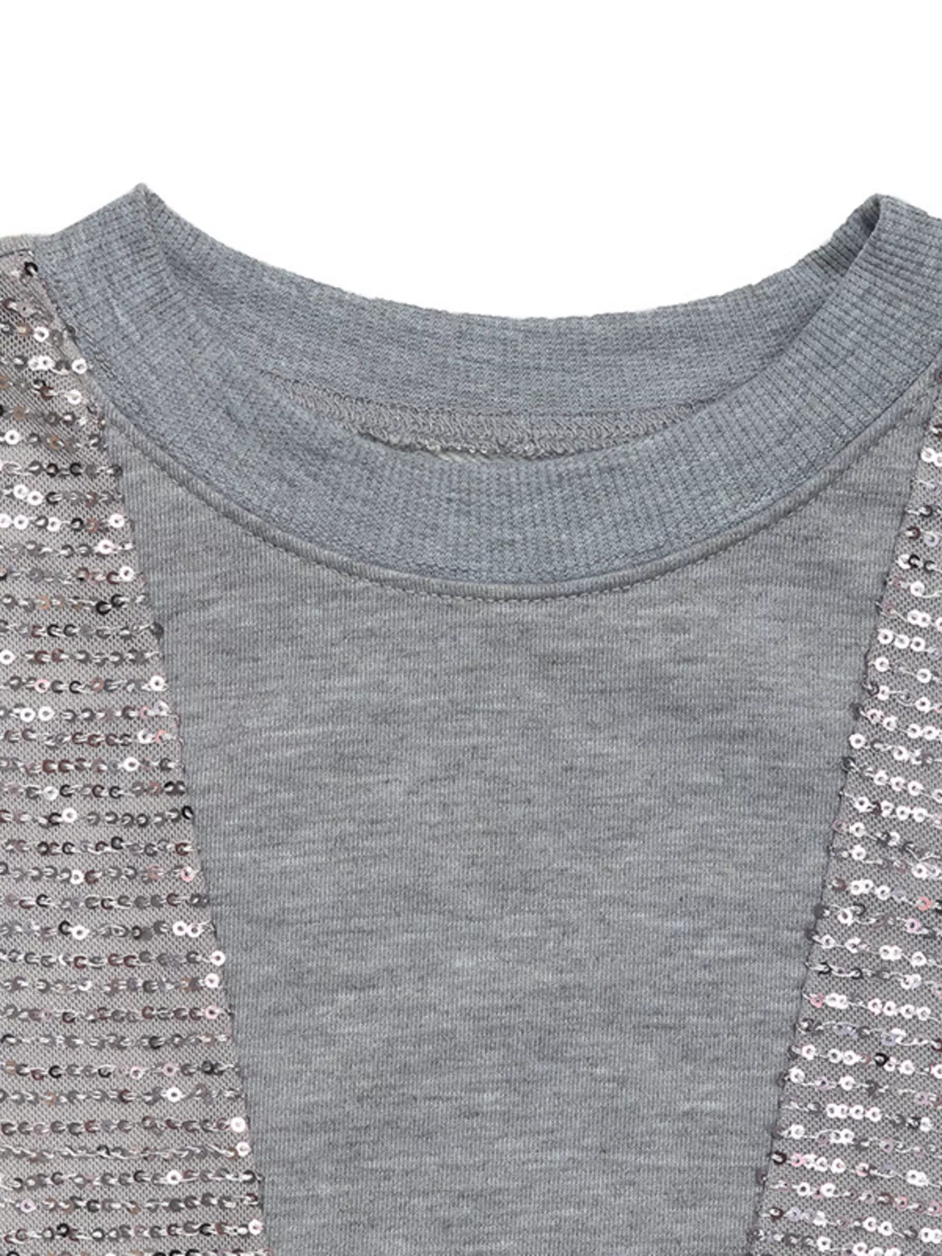 Sequin Round Neck Dropped Shoulder Sweatshirt