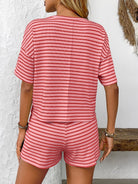 Striped Round Neck Short Sleeve Top and Shorts Set