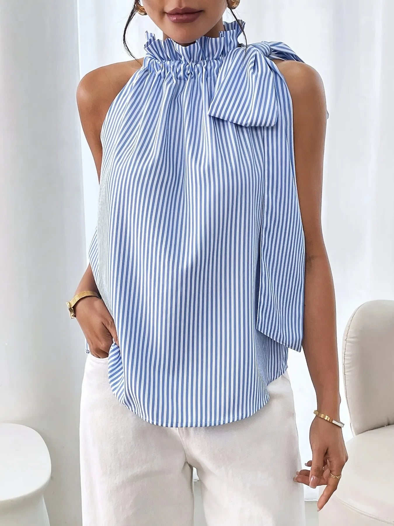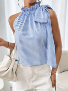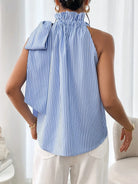 Striped Sleeveless Blouse with Bow Tie Detail