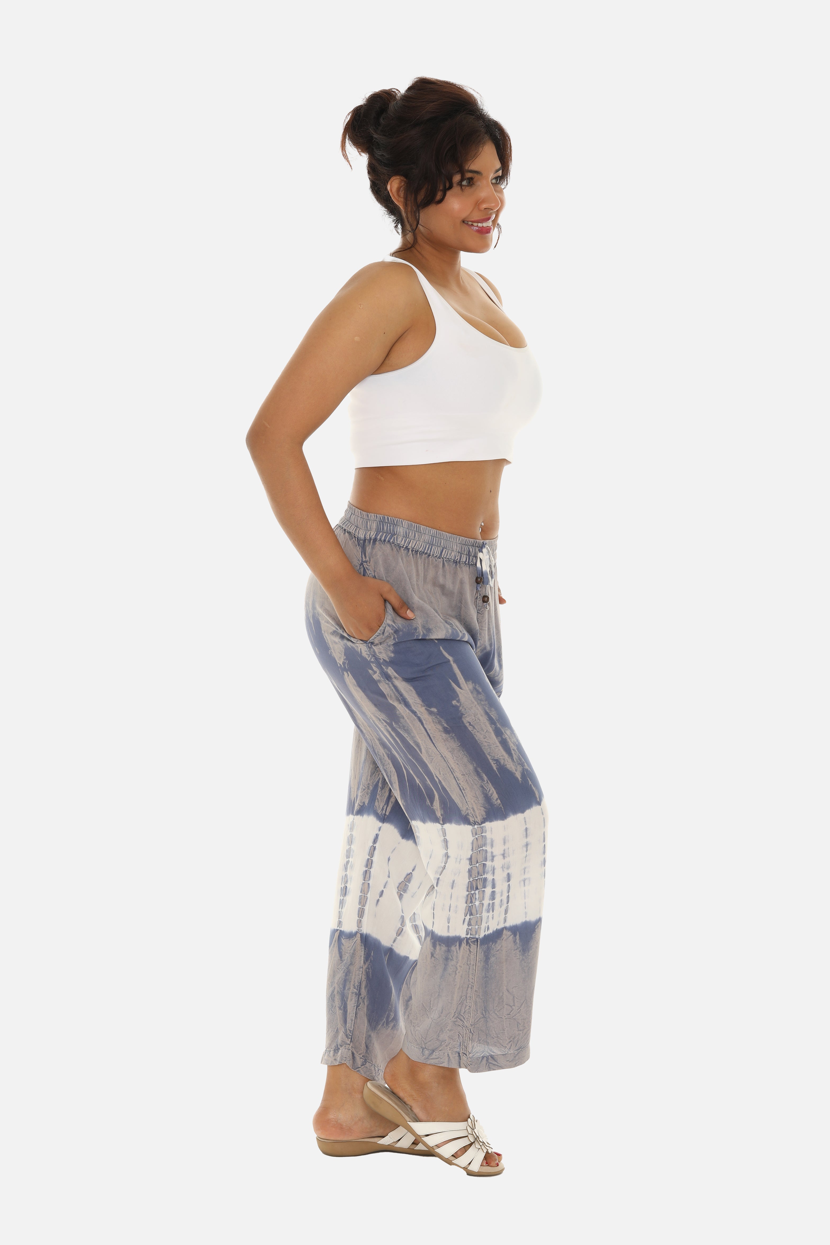 Wide-Leg crinkle rayon Tie & Dye Women Pants
