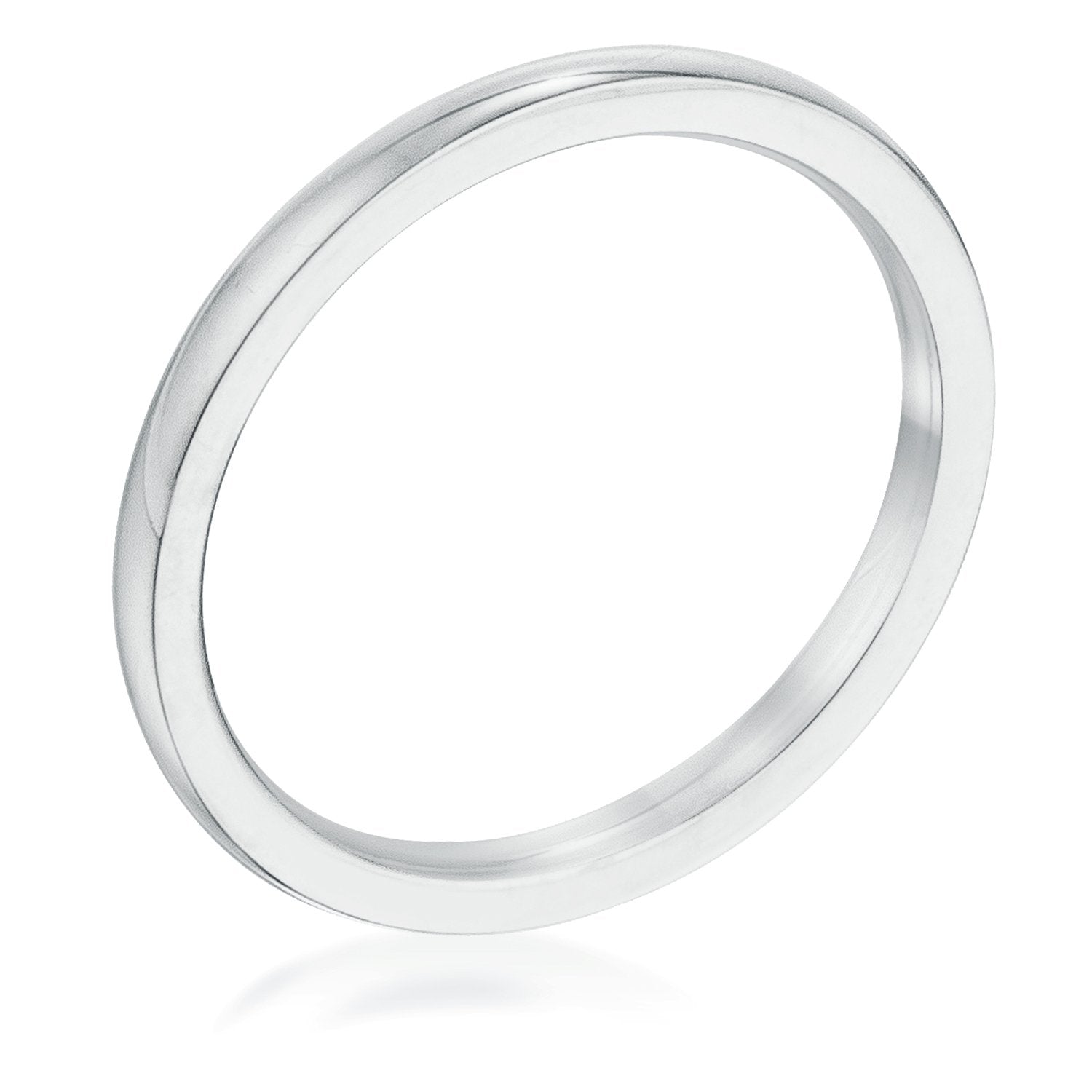 This 2mm Stainless Eternity Wedding Band is constructed from 304L Stainless Steel. If you have a platinum or white gold wedding band that is showing scratches replace it with one of these for the same look. Our genuine rhodium finish is achieved using an electroplating process that coats the item with heavy layers of rhodium a close cousin to platinum which gives our jewelry a platinum luster.