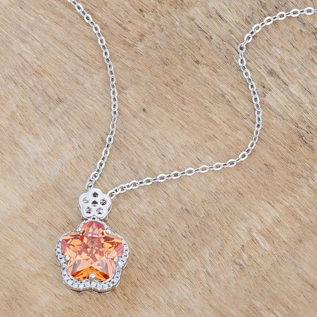 This pendant is crafted with rhodium plating so the chain and setting shine like white gold. The star attraction the champagne floral cut cubic zirconia is accented with lovely round cubic zirconia for extra sparkle. This pendant manages to combine the best of elegance and showiness all at once and will certainly start conversationsand maybe more!