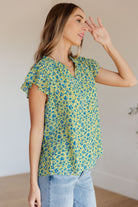 Anywhere We Go Flutter Sleeve Top in Blue Combo