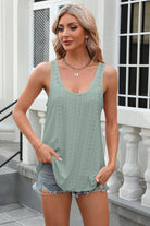 Eyelet Scoop Neck Wide Strap Tank
