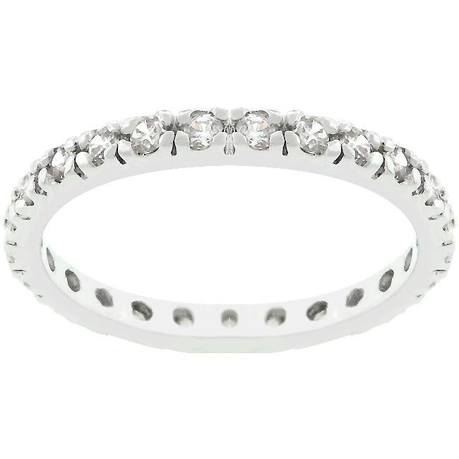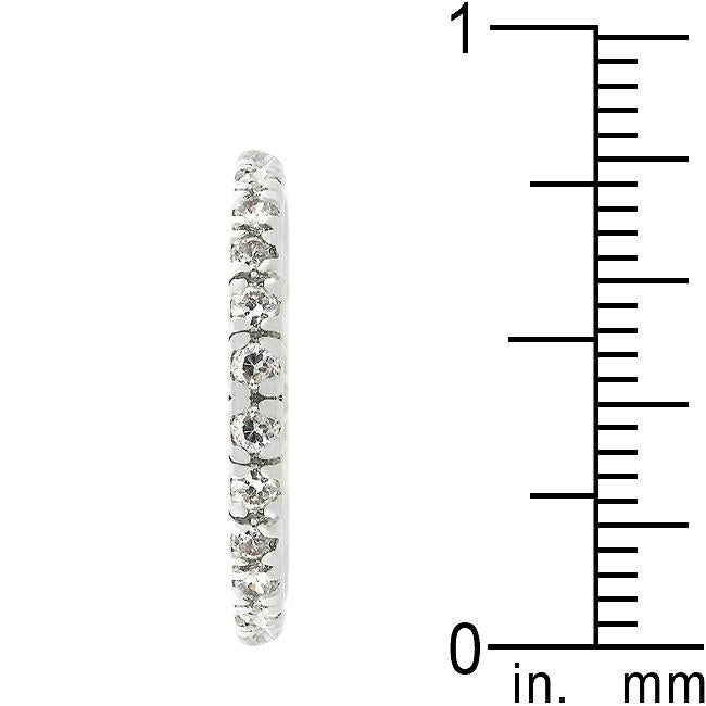 This petite eternity style classic is fashioned with approximately .6 carats of round cut cubic zirconia set over a lustrous silver tone. Genuine Rhodium Plating is achieved using an electroplating process that coats the item with heavy layers of rhodium a close cousin to platinum which gives our jewelry a platinum luster.