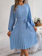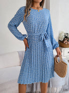 Ditsy Floral Tie Waist Pleated Dress