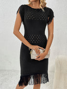 Fringe Openwork Boat Neck Knit Dress