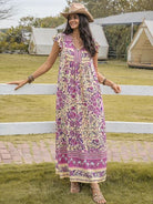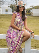 Ruffled Printed Tie Neck Cap Sleeve Dress