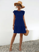 Ruffled Round Neck Cap Sleeve Mini Dress