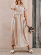 V-Neck Short Sleeve Midi Dress