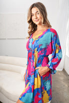 White Birch Full Size Printed V-Neck Mini Dress