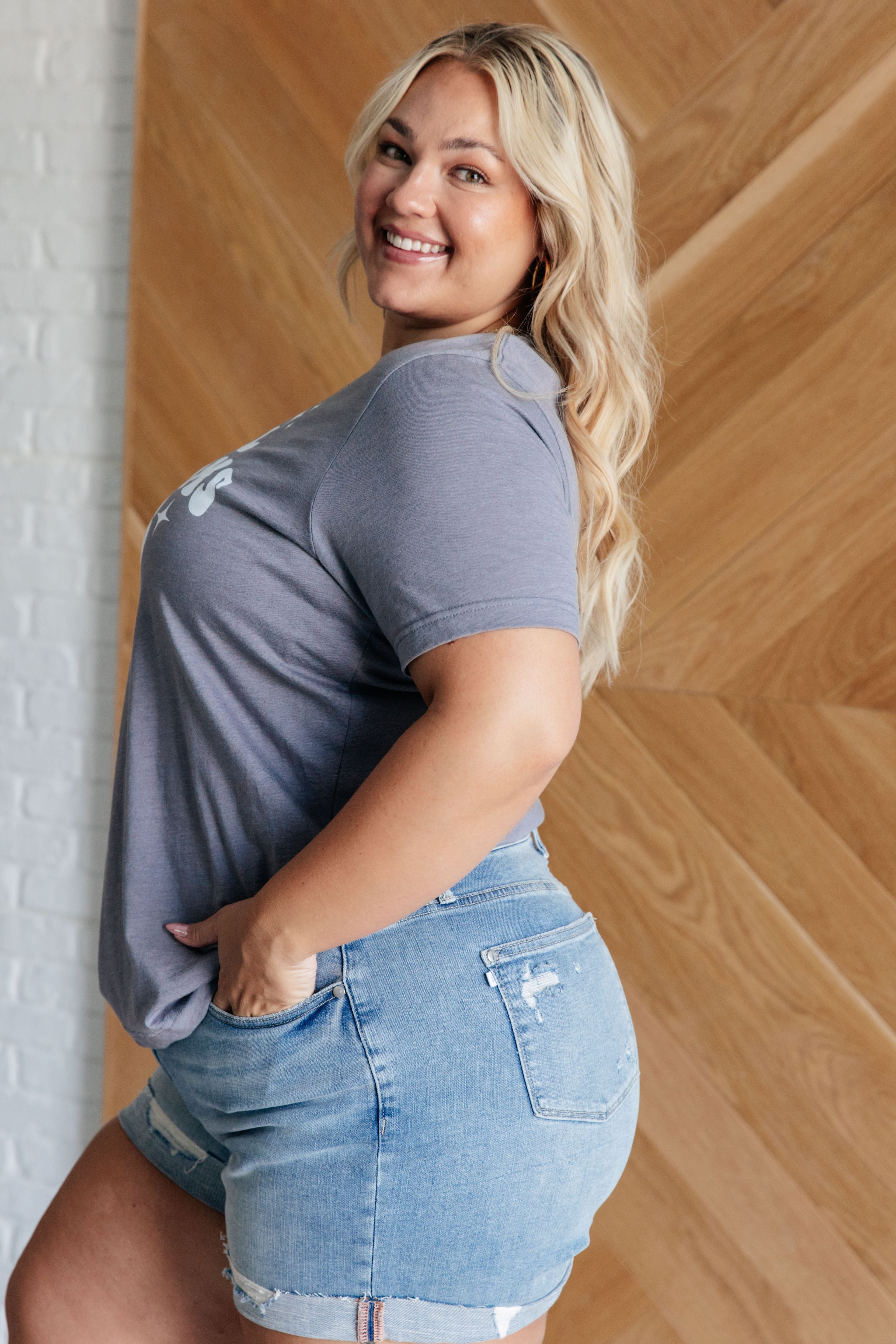 • Darlene High Rise Distressed Cuffed Cutoff Shorts