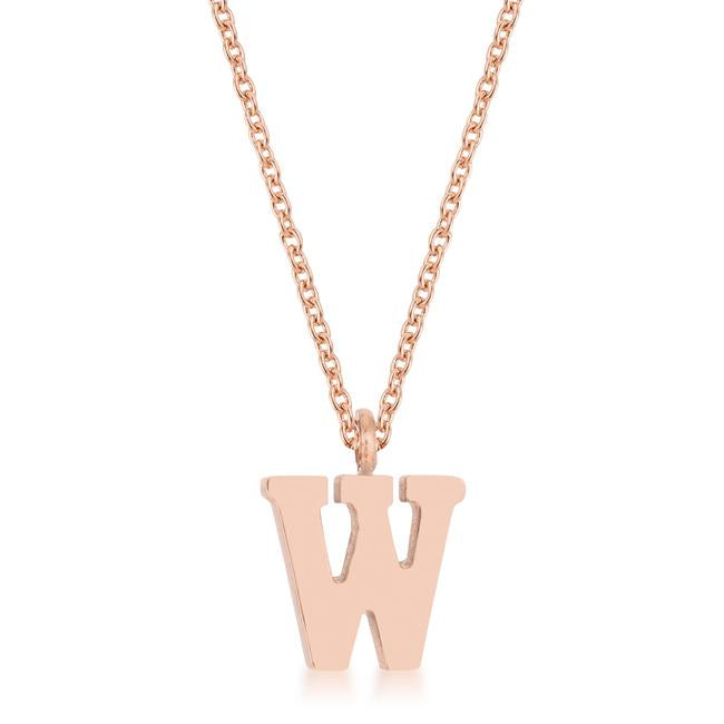 Elaina Rose Gold Stainless Steel W Initial Necklace