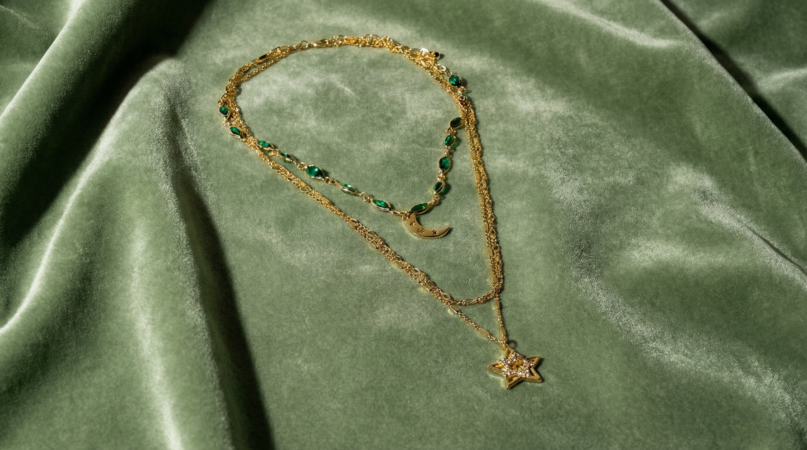 3 Row Green Celestial Necklace