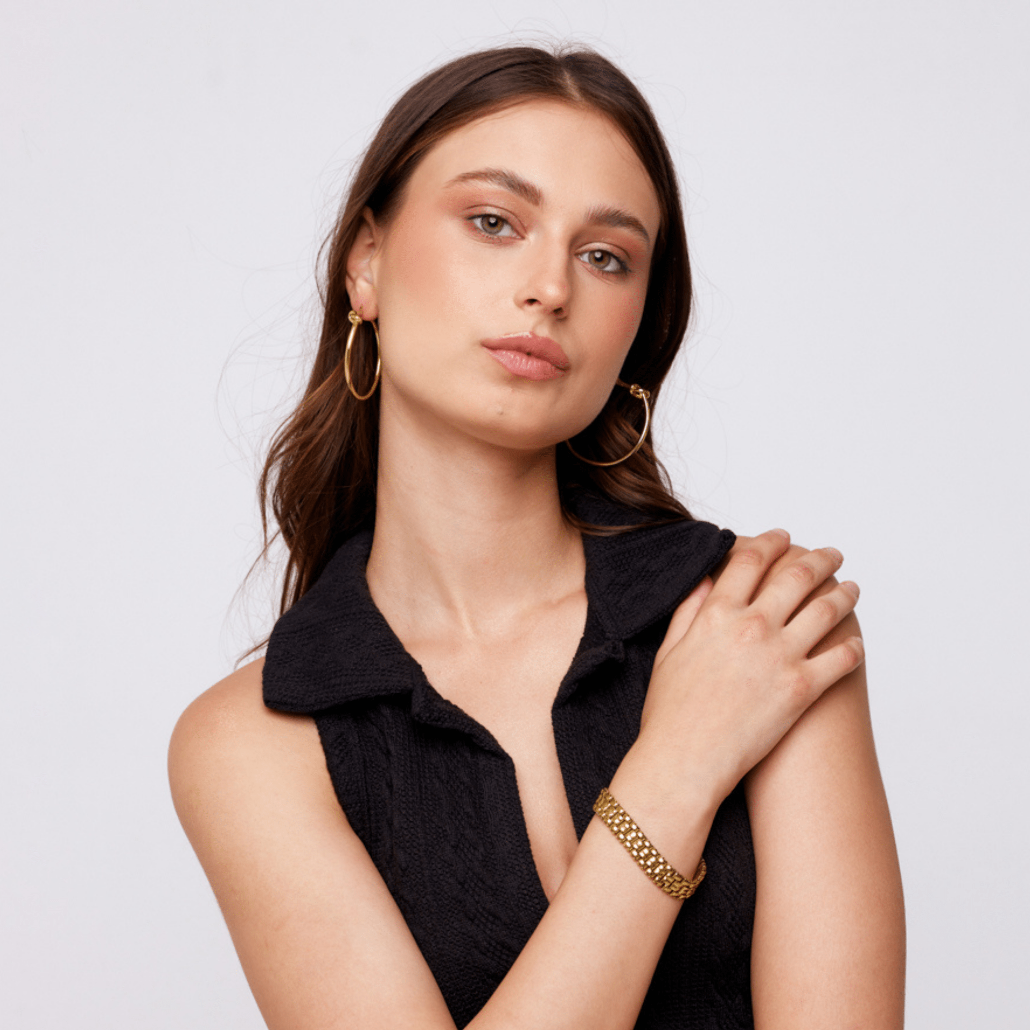 These Karen Earrings combine elegance with durability, crafted from 18K gold-plated copper and featuring sterling silver posts safe for sensitive ears. Measuring 2 inches in height and 0.16 inches in width, they offer a subtle yet stylish look. Designed to resist tarnish and waterproof, they maintain their shine with proper care. To keep them looking their best, avoid contact with body products and clean gently with a lint-free microfiber cloth. Perfect for everyday wear, these earrings blend quality and comfort effortlessly.