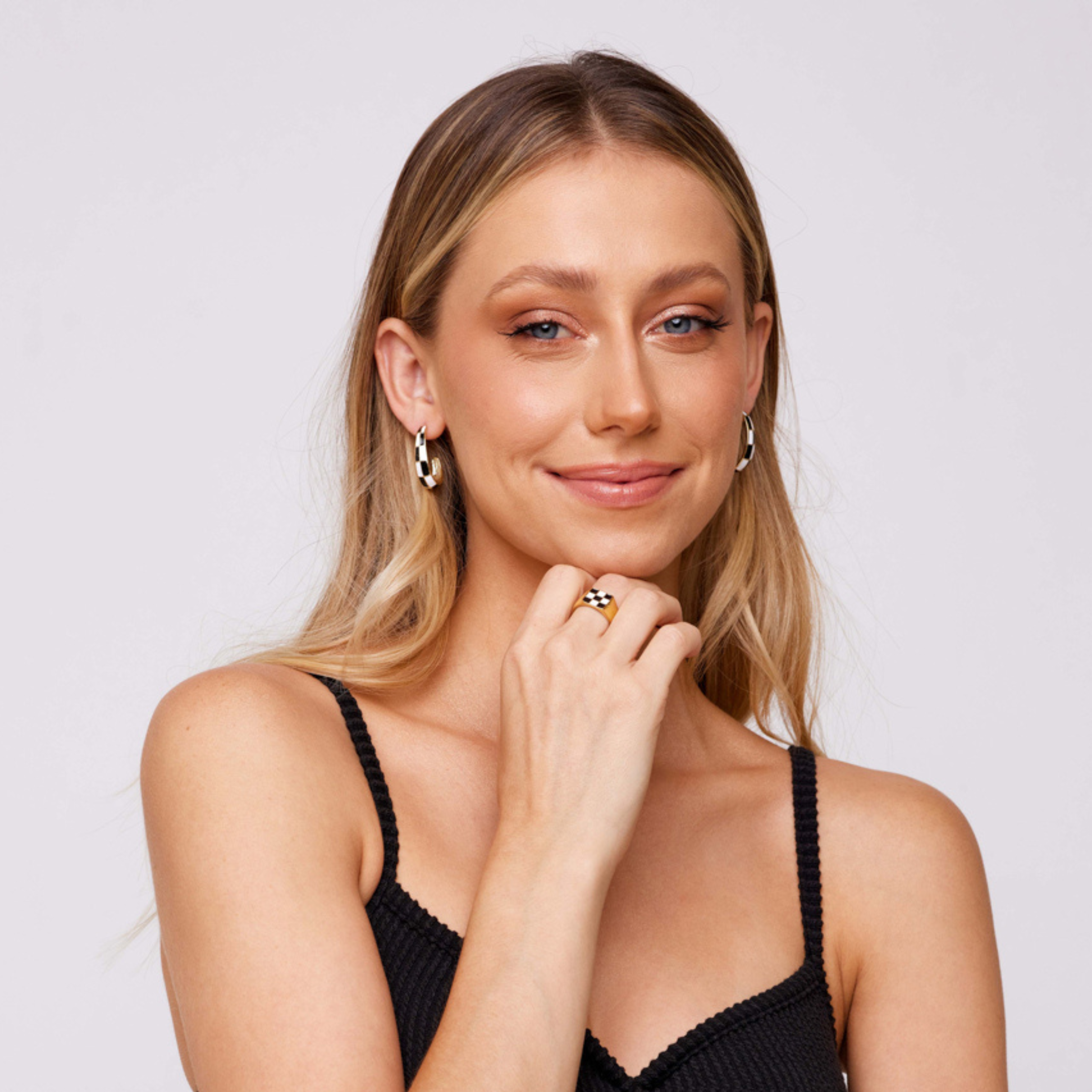 The Michelle Ring features a delicate face measuring 0.39" by 0.43" and adjusts comfortably to fit sizes 5 through 9. Crafted from 18K gold-plated copper, it offers lasting shine without tarnishing and is waterproof for everyday wear. To keep its brilliance, avoid exposure to soaps, perfumes, lotions, and cleaning products, and polish gently with a lint-free microfiber cloth. This versatile ring combines expert craftsmanship with easy maintenance, making it a stylish addition to any collection.