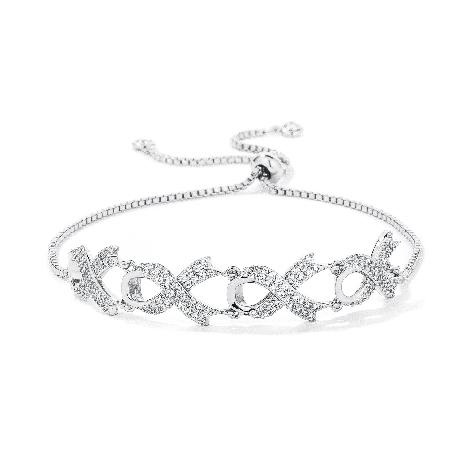 Rhodium Plated Pave CZ Ribbon Bracelet