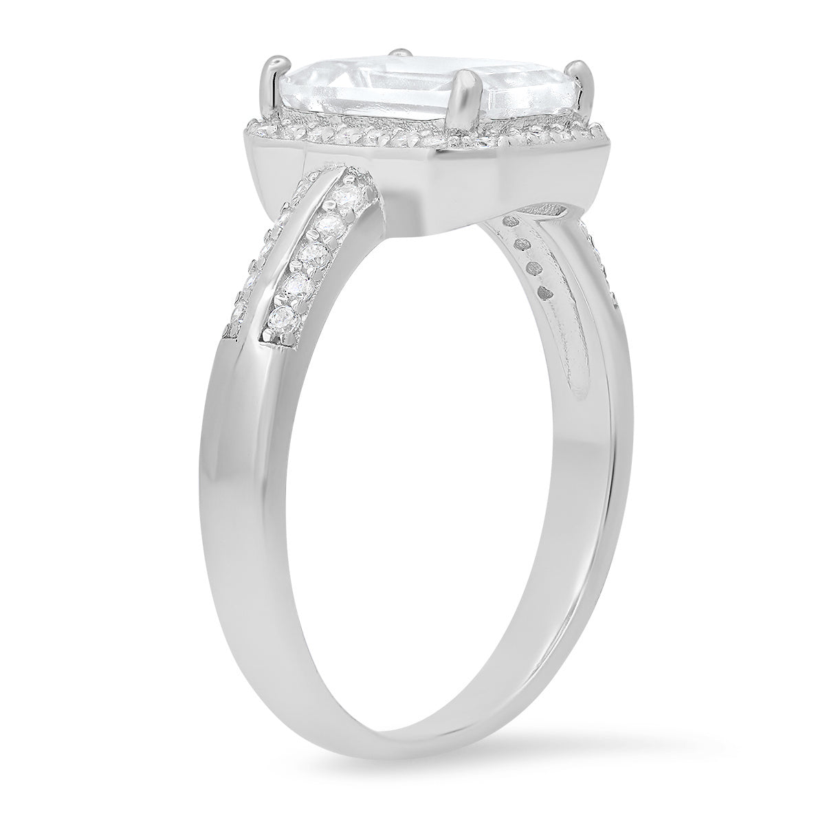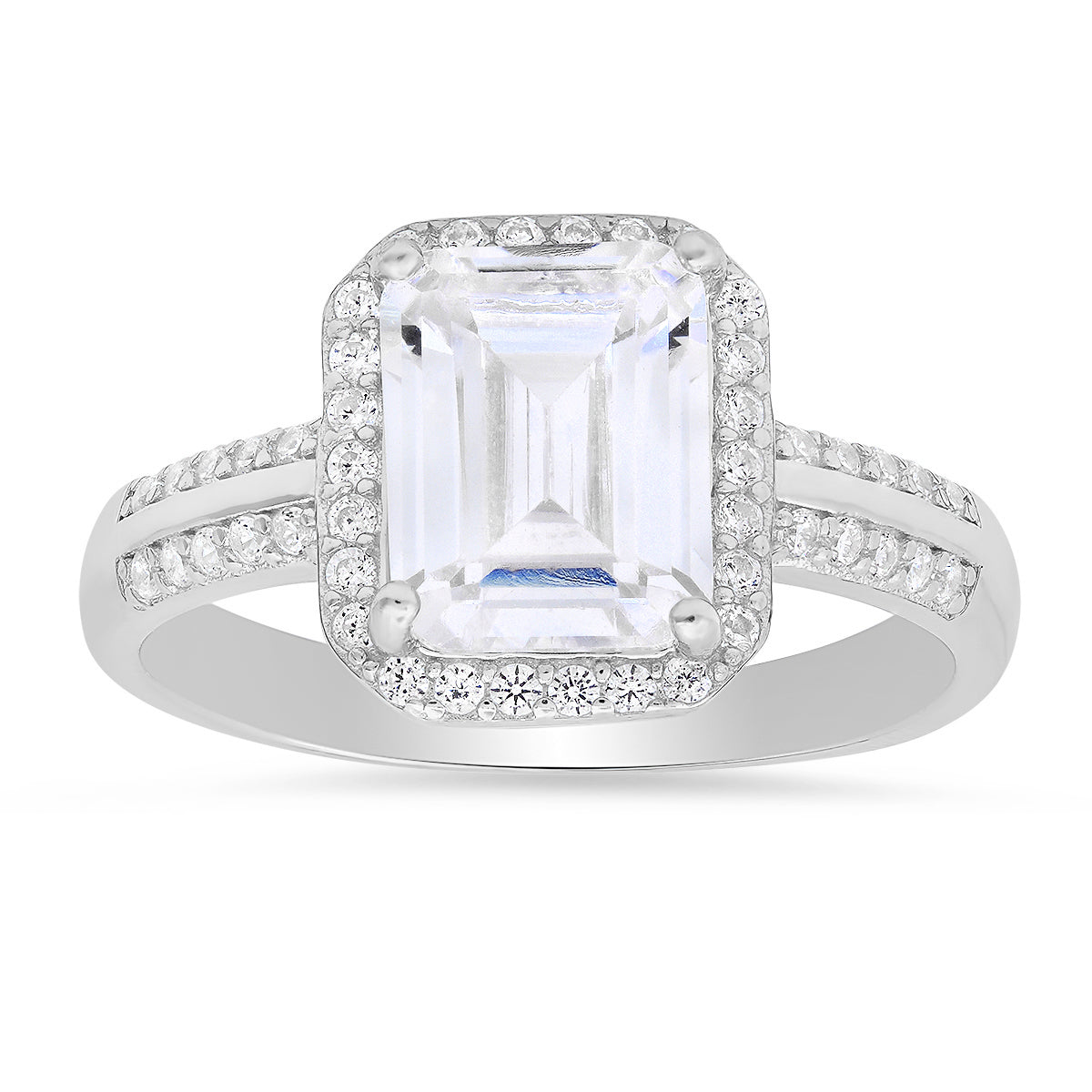 Sterling Silver Emerald-cut Diamond CZ Halo Ring