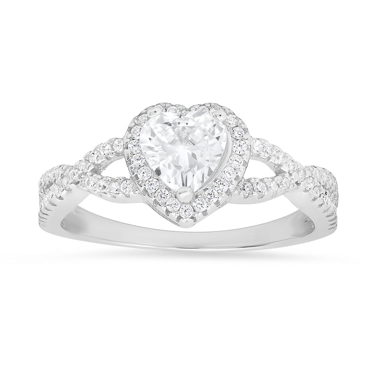 Sterling Silver Heart-cut Halo Diamond CZ Ring