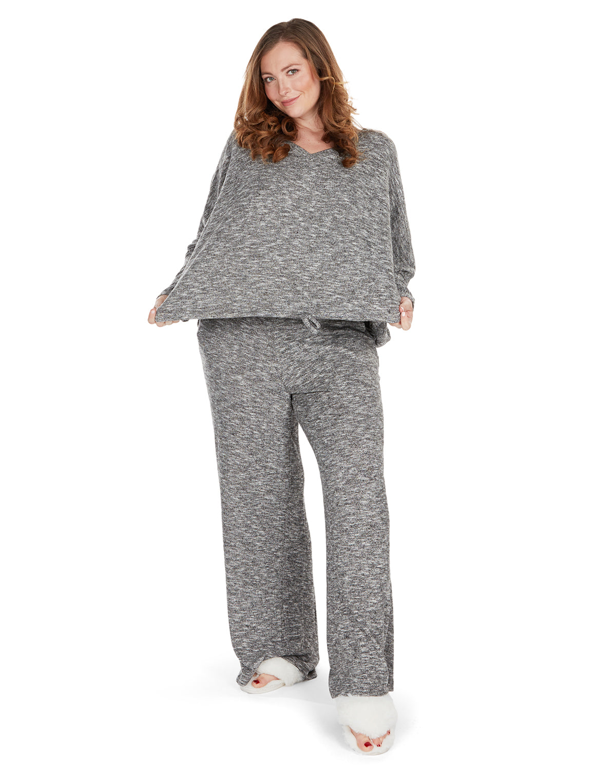 Our Hacci Long-Sleeve Pullover is laid-back style with a luxurious feel, tailor made for all kinds of girls. This loose fitting top is perfect for all-day lounging…Simply because you'll never want to take it off! Made from ultra-soft Hacci knit fabric, the pullover is lightweight but will keep you warm and cozy through chilly days to nippy nights. Adjust its slouchy style and find the ideal fit with the convenient drawstring hem at the waist. Pair with our Hacci Wide-Leg Lounge Pants for your go-to loungewear look.