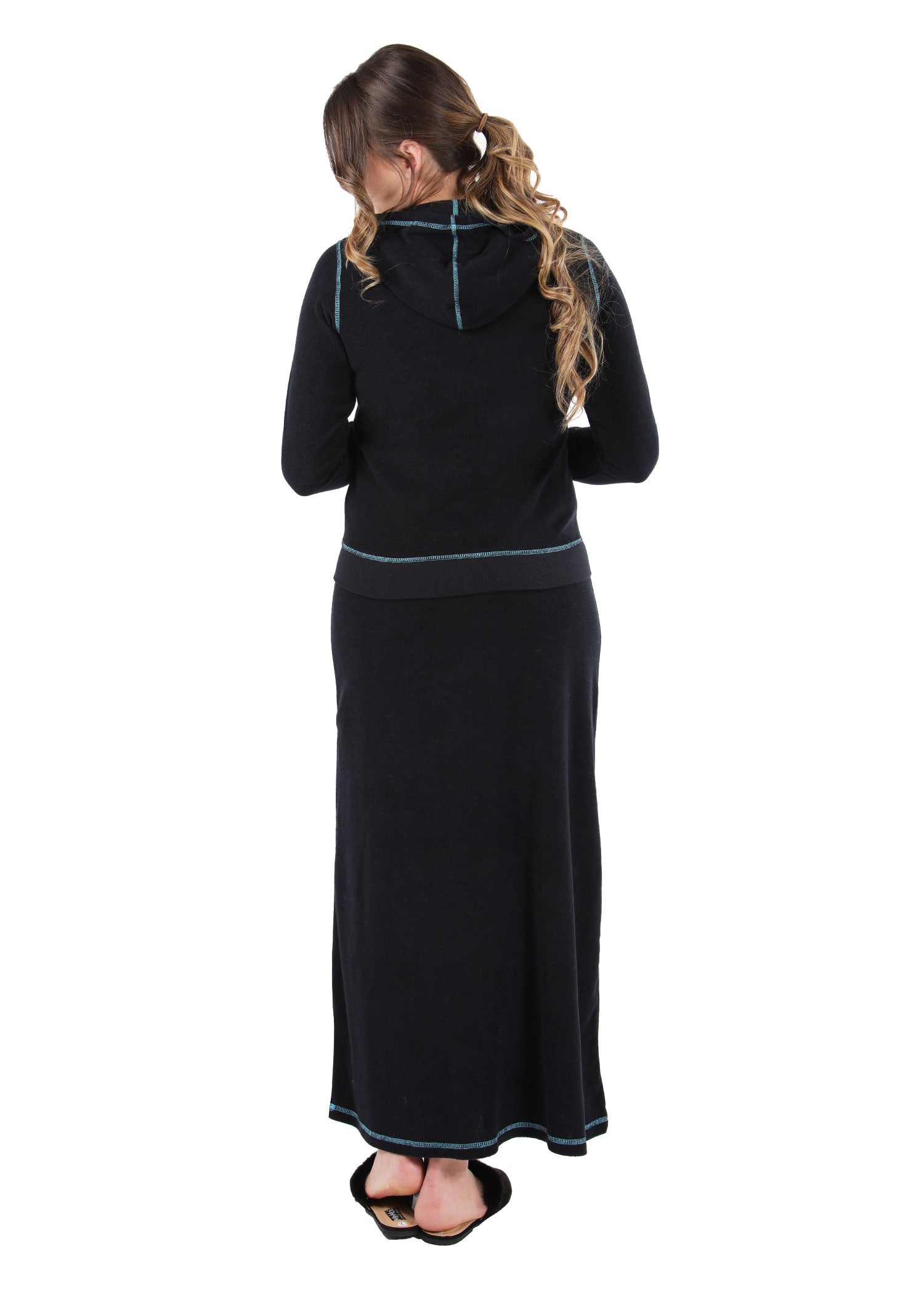 Our Terry Cloth Hooded Jacket & Skirt Set keeps you looking good and feeling cozy whether it's a night of relaxation or a night by the beach. Terry cloth keeps you comfortable and wicks moisture, with an attached hood for keeping snug. The matching skirt adds a little fashion flare to this sleepwear, with the same terry cloth design for all over comfort
