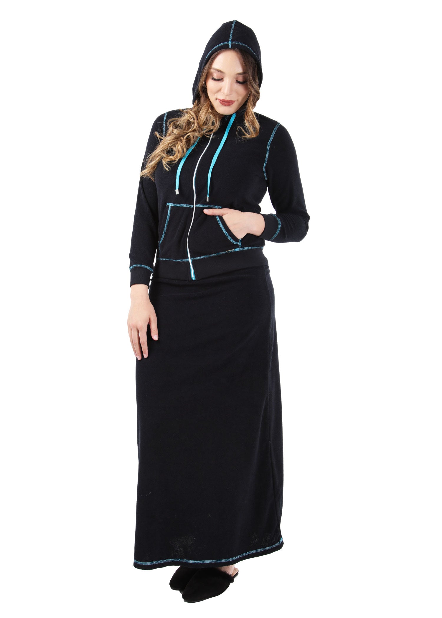 Women's Terry Cloth Cotton Blend Hooded Jacket and Skirt Set