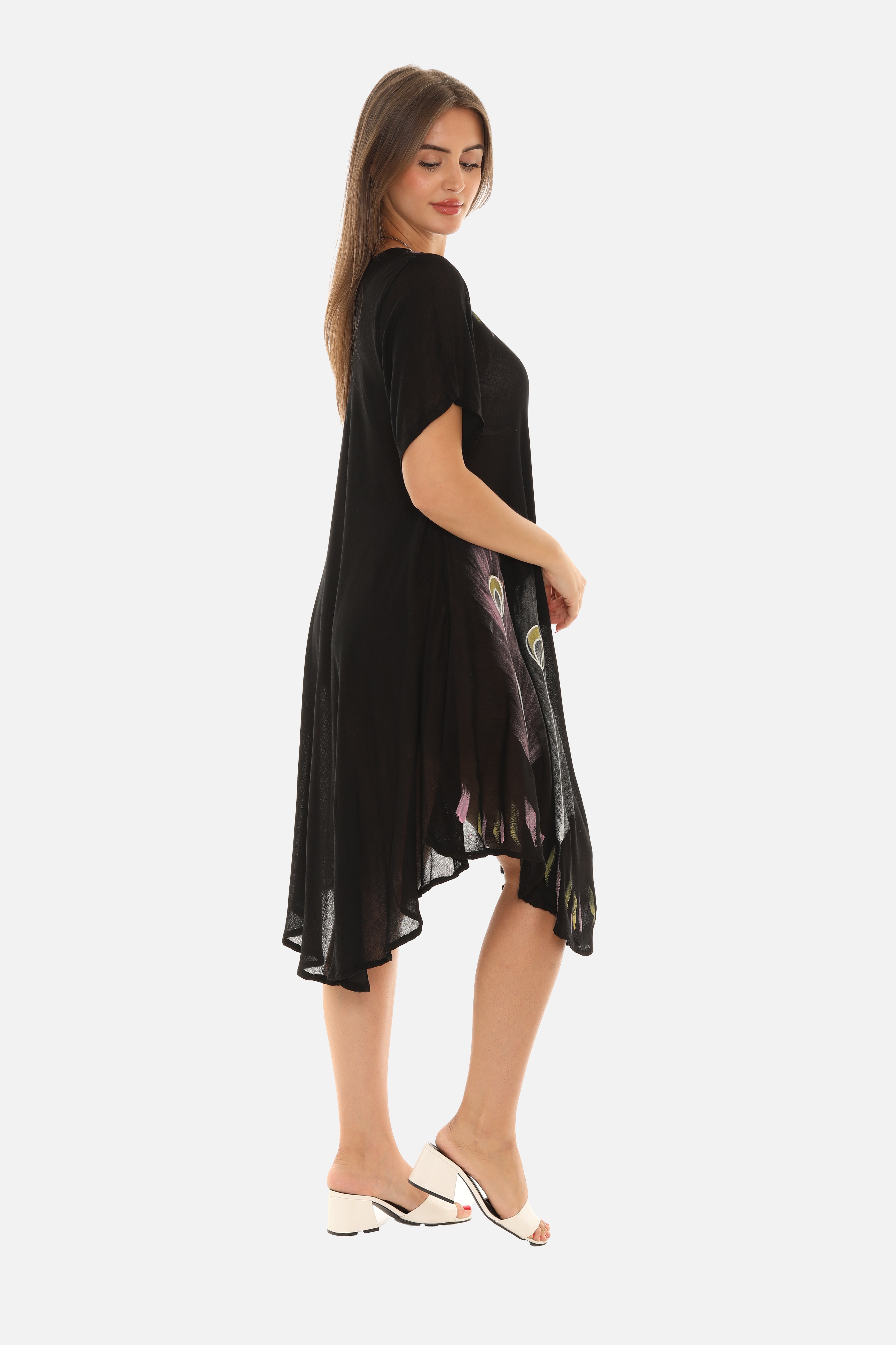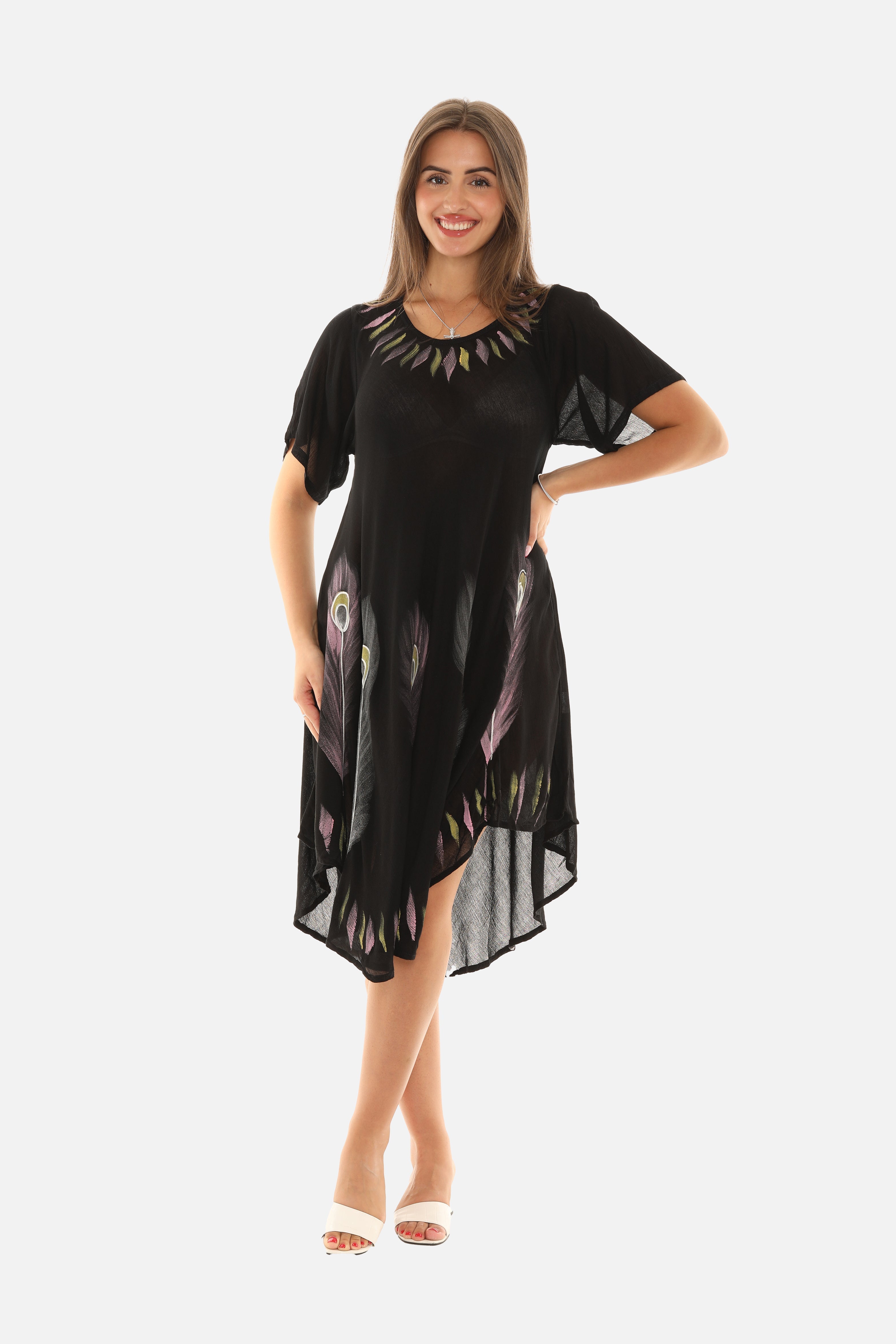Brush Paint Half Sleeve Scoop Neck Sundresses