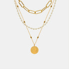 Synthetic Pearl Titanium Steel Three-Layered Necklace