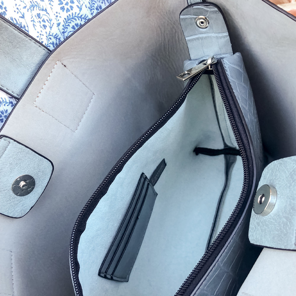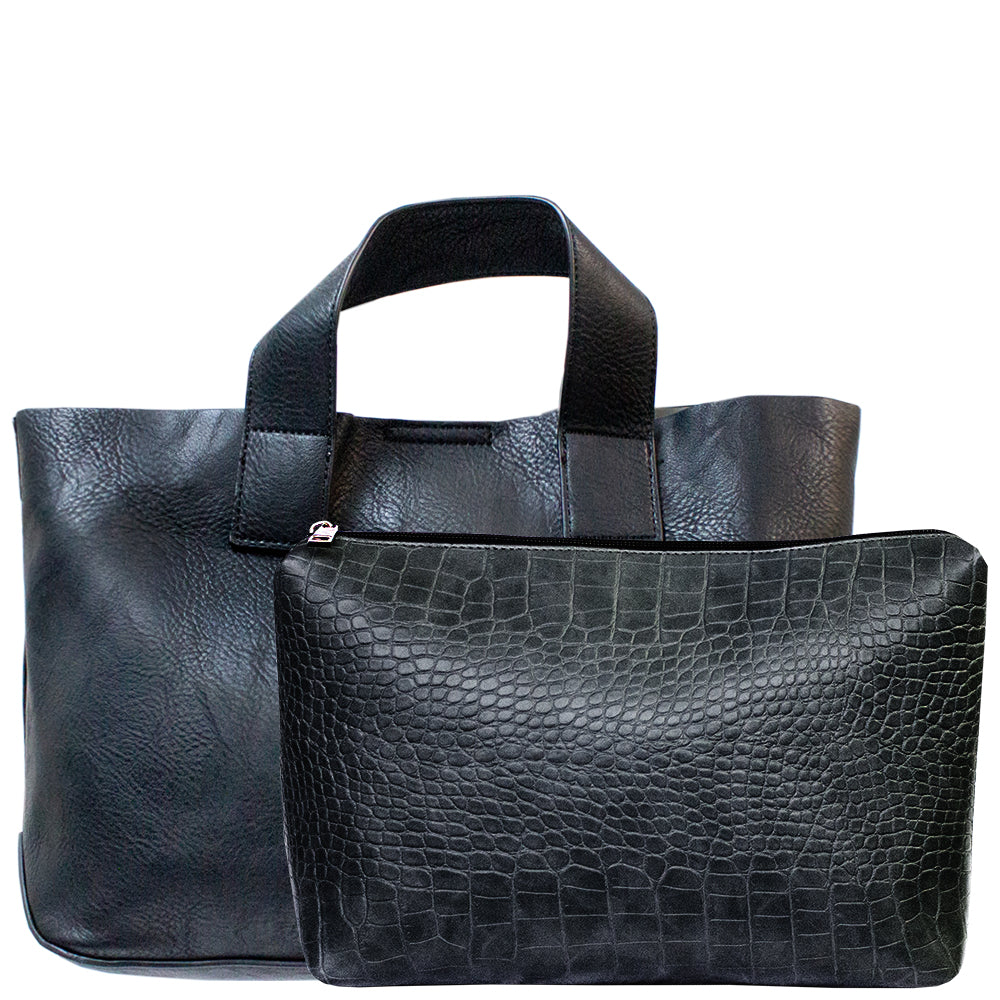 - Vegan leather (on each bag), croc texture (on Organizer)