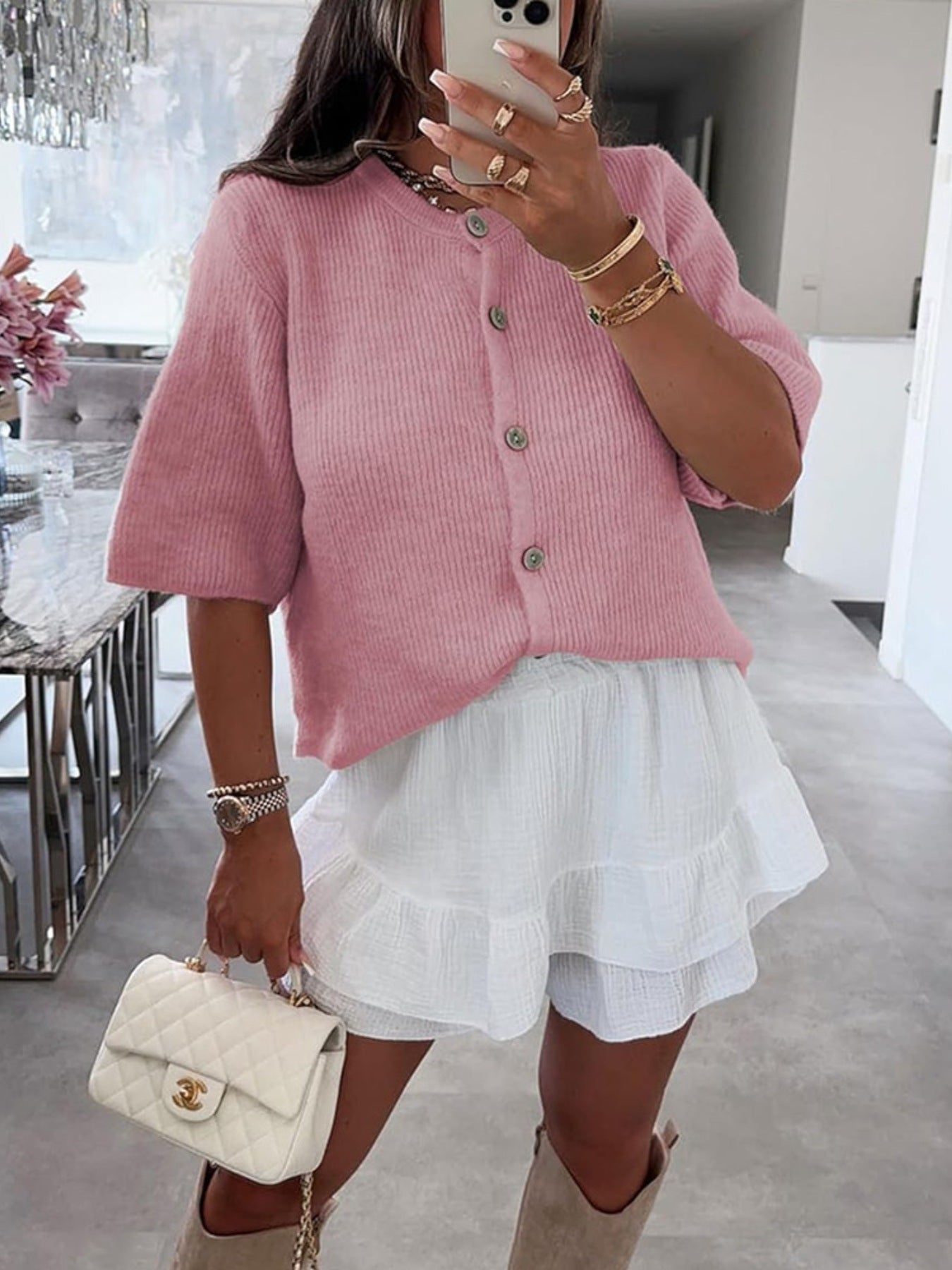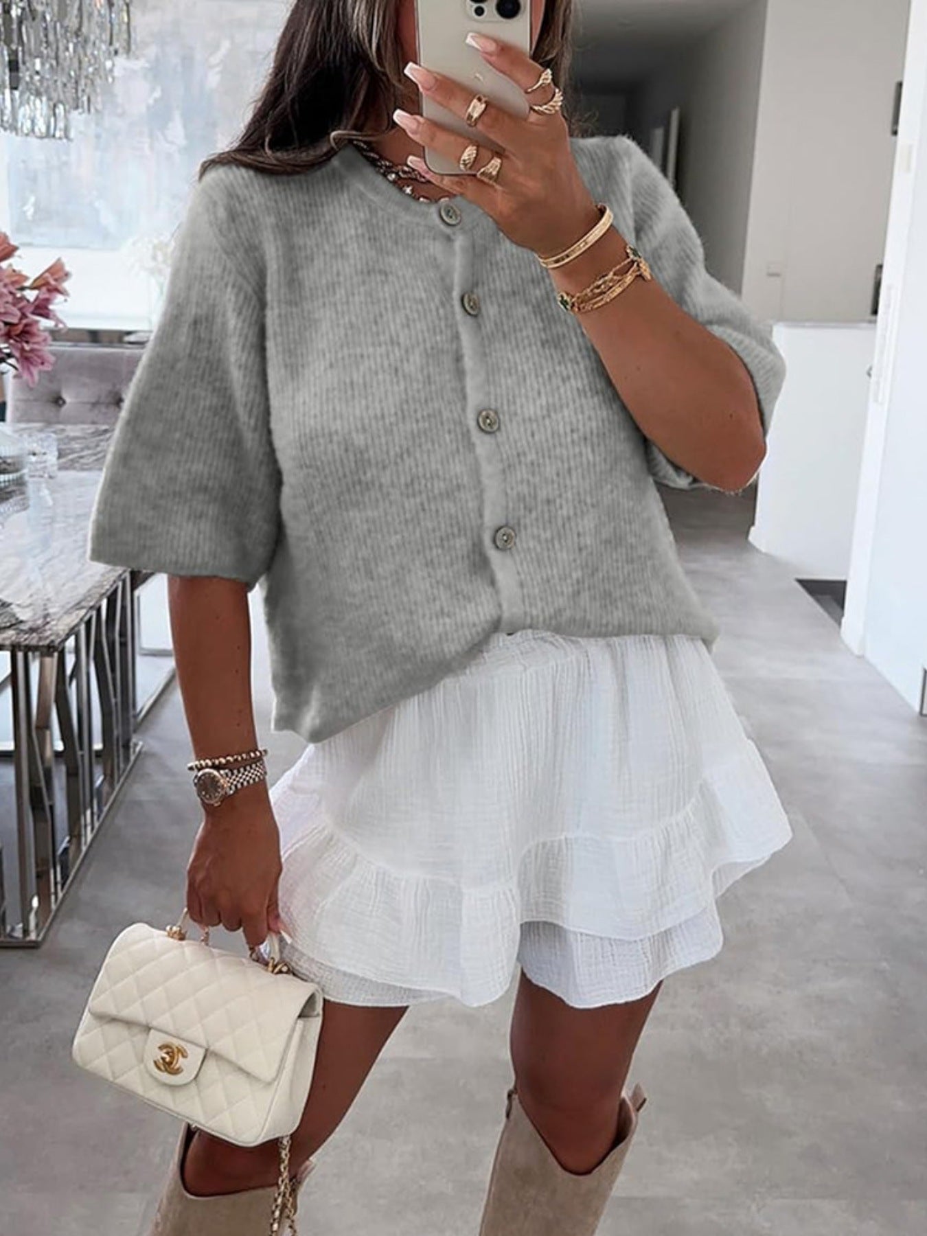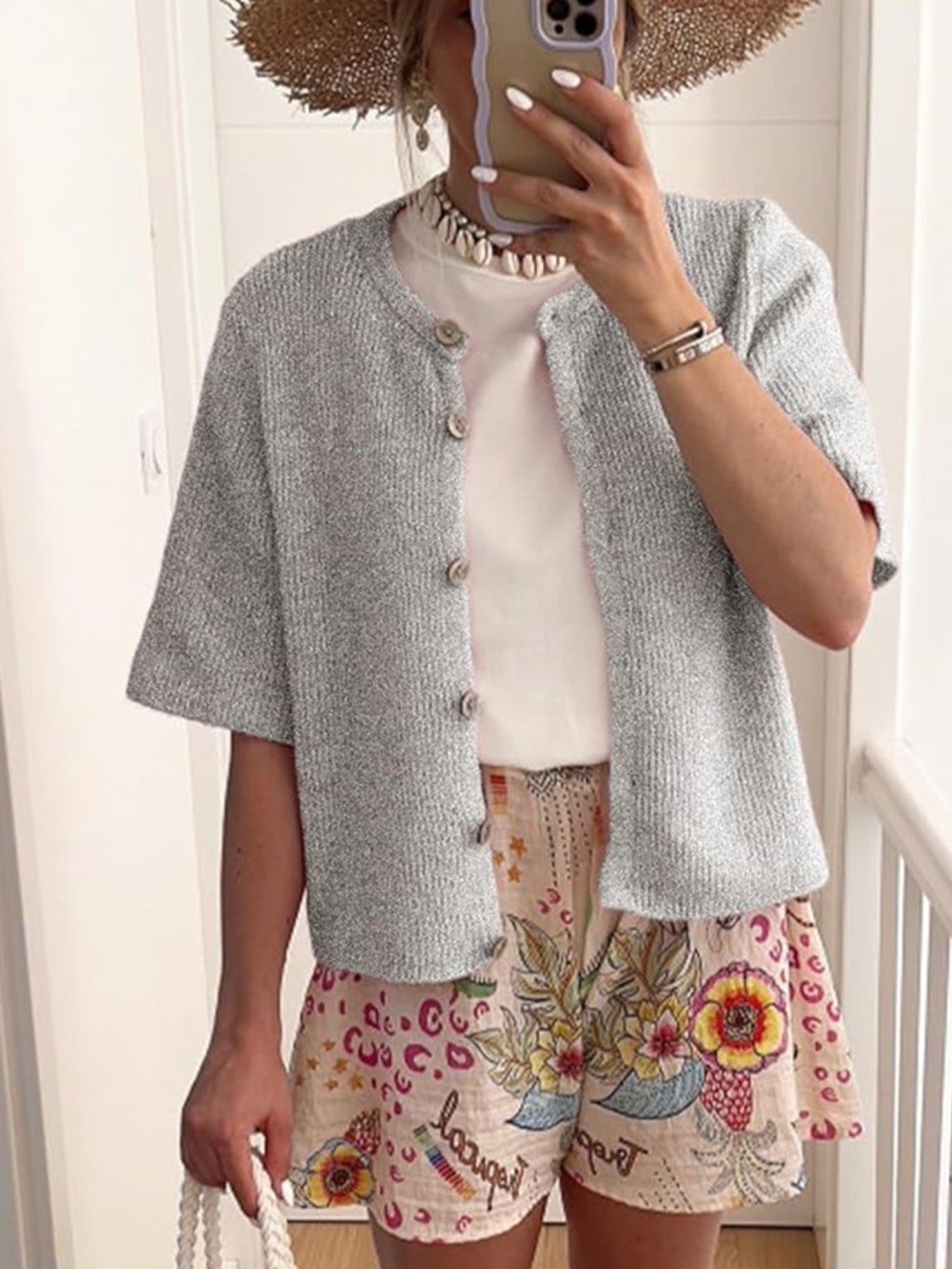 Short Sleeve Button-Down Cardigan