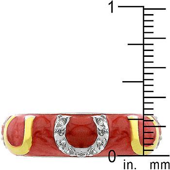 Stunning cubic zirconia horseshoes make up this western enamel two-tone ring. Genuine Rhodium Plating is achieved using an electroplating process that coats the item with heavy layers of rhodium a close cousin to platinum which gives our jewelry a platinum luster.