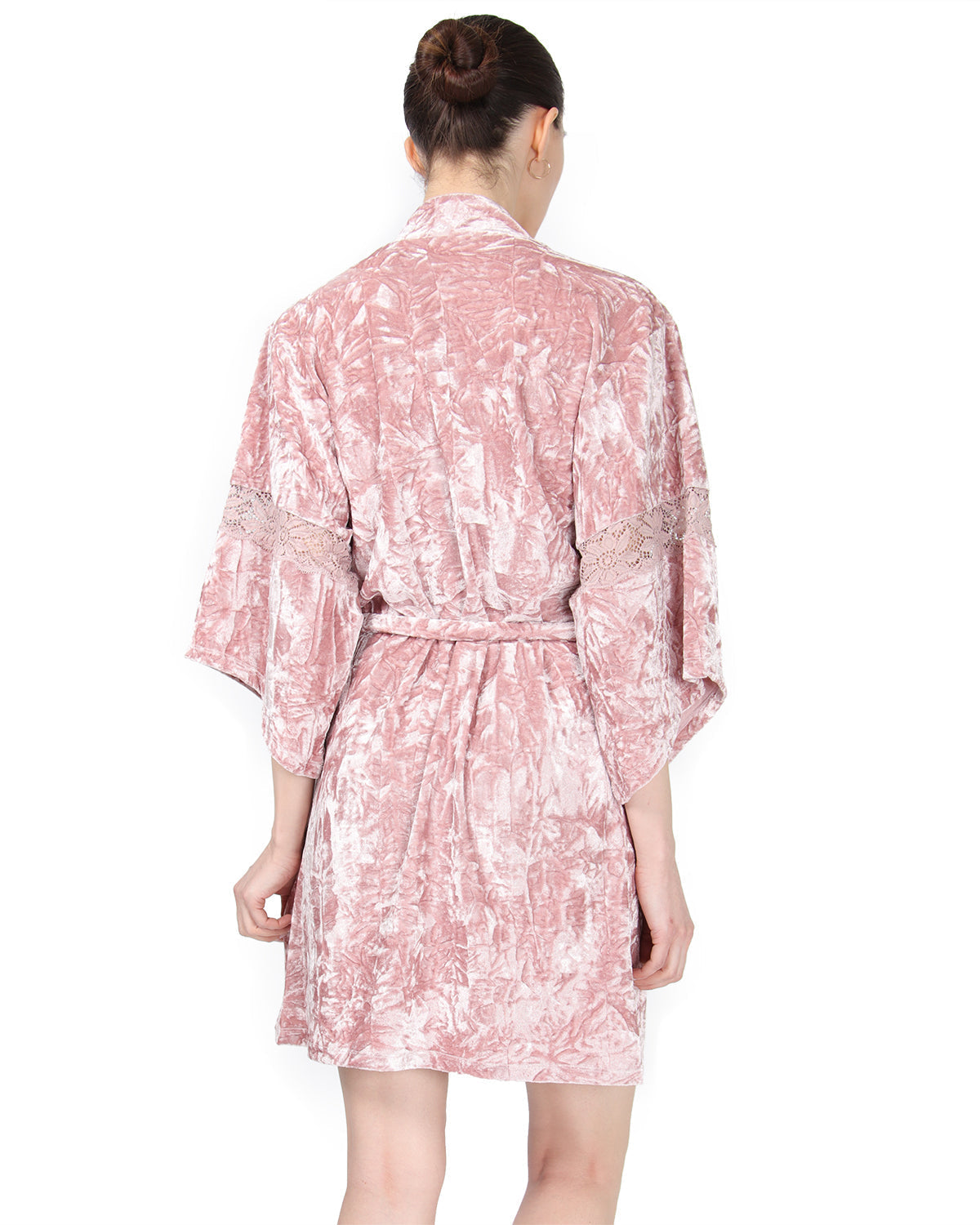You'll feel like Lady Juliet in the House of Capulet when you slip on MeMoi's Romantic, Crushed Velvet Kimono Robe. Flowery lace trim inserts on bell sleeves add a sensual, dramatic flair to this scrumptiously soft Kimono. Cozy up in our must-have robe - a beautiful addition to your intimate apparel. For a perfect pairing, match with MeMoi's Crushed Velvet Chemise.
