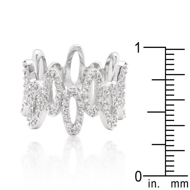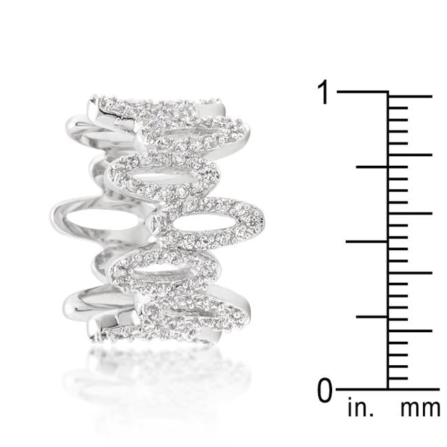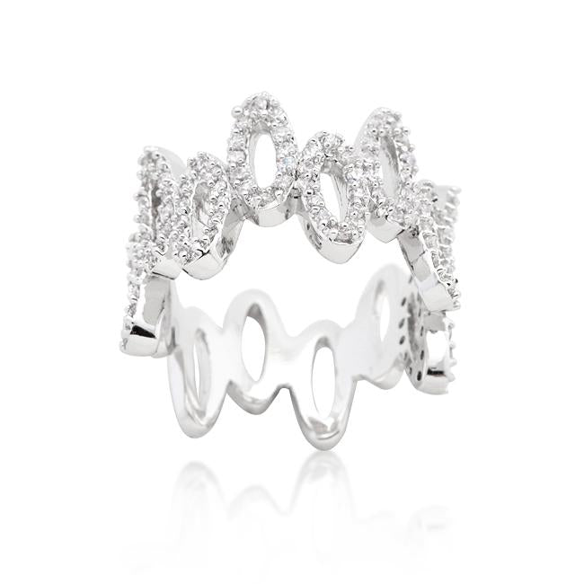 Sparkling stones set in a row of oval shapes come together to form this rings cool faded design. Our genuine rhodium finish is achieved using an electroplating process that coats the item with heavy layers of rhodium a close cousin to platinum which gives our jewelry a platinum luster.
