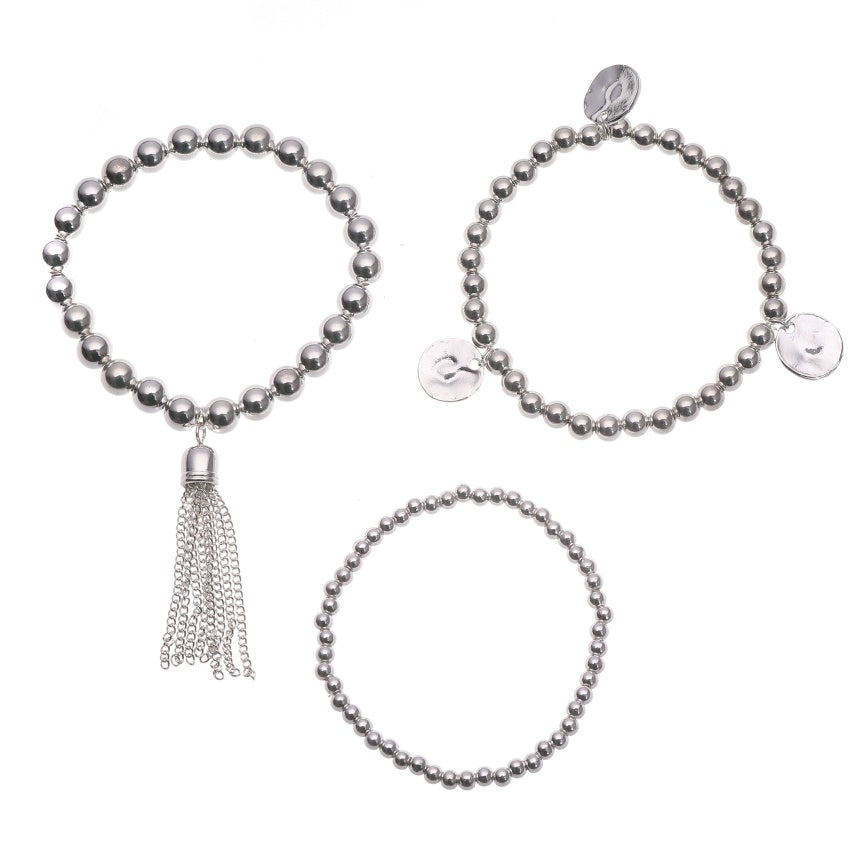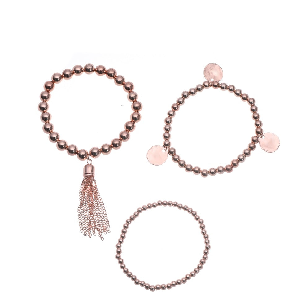 | Metal Bead Stretch Tassel Bracelet - Set of 3 |