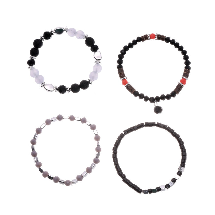 Stacked Bead and Tassel Stretch Bracelet - Set of 4