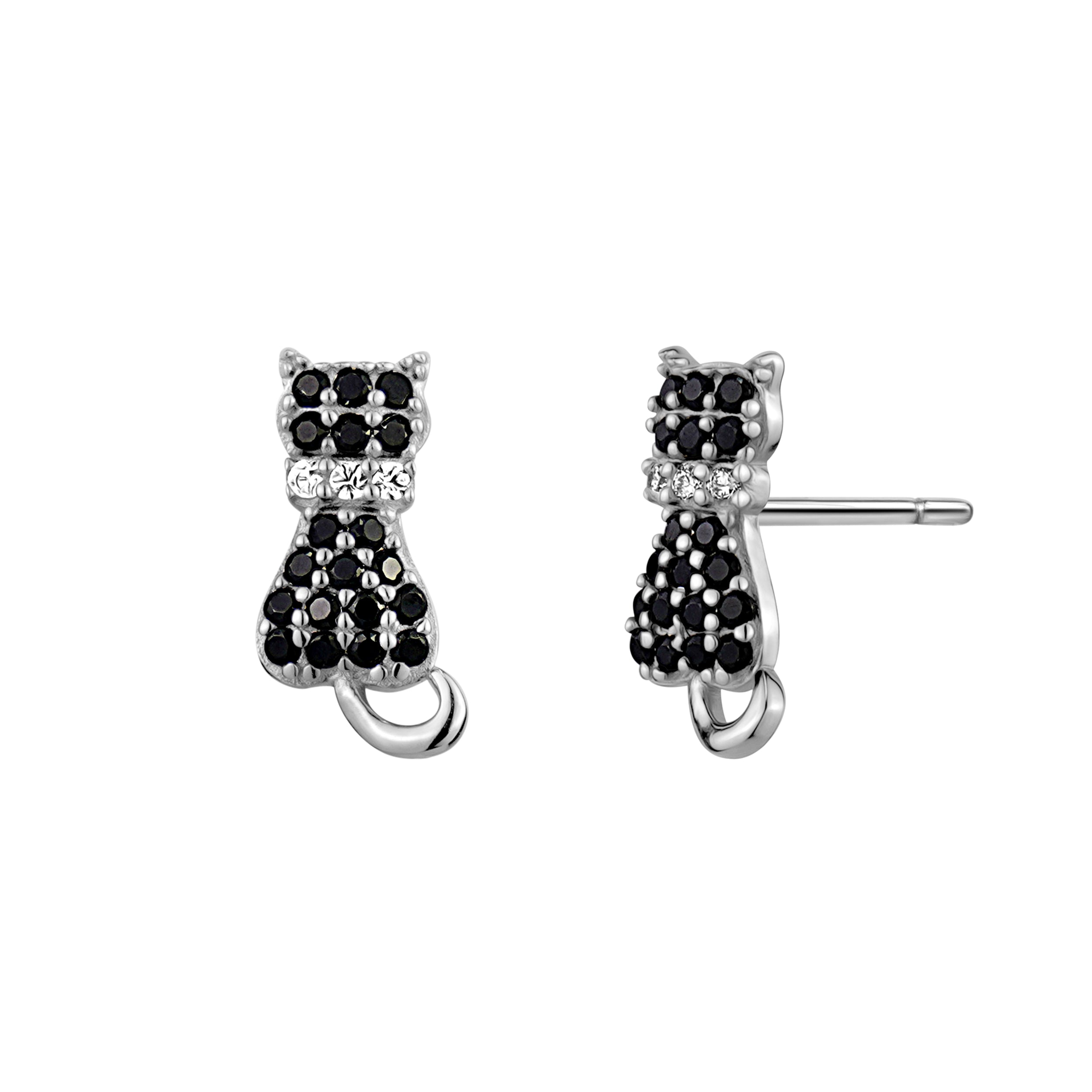 GL Creations- Sterling Silver Cat Earring Black CZ