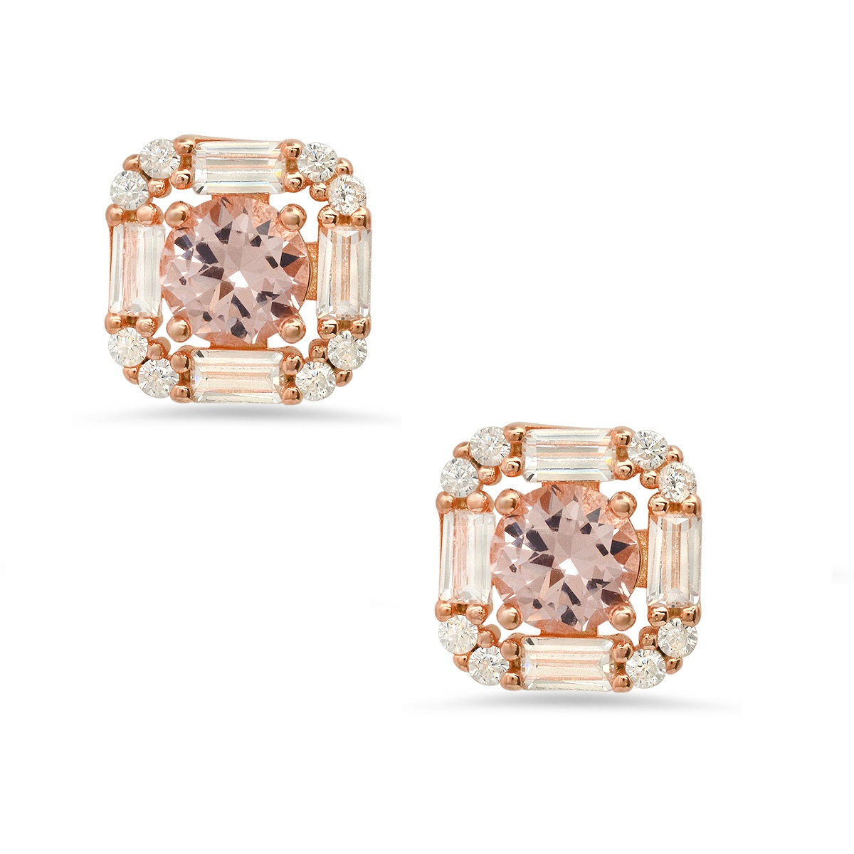 Rose Gold Over Silver Morganite CZ Halo Stud Earrings