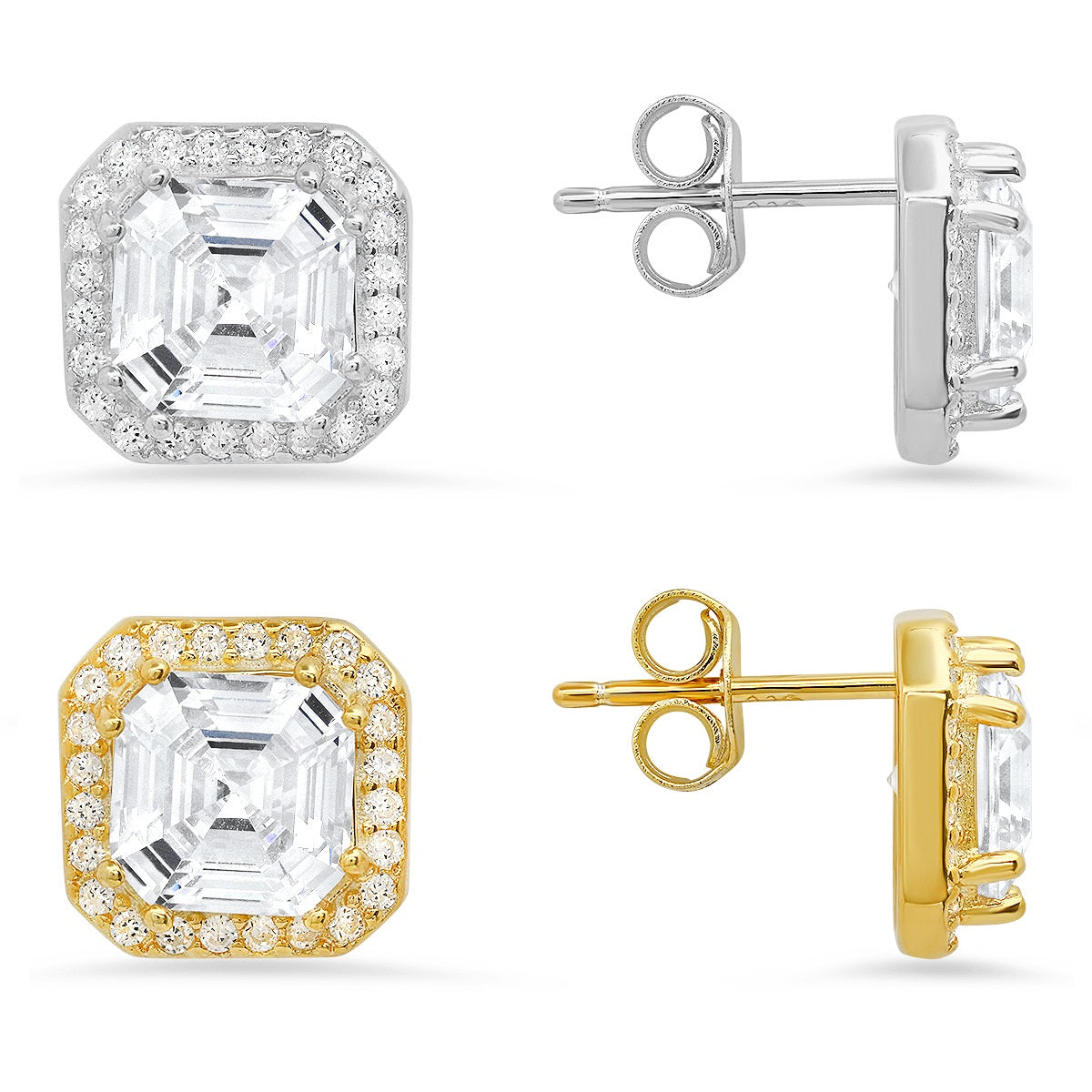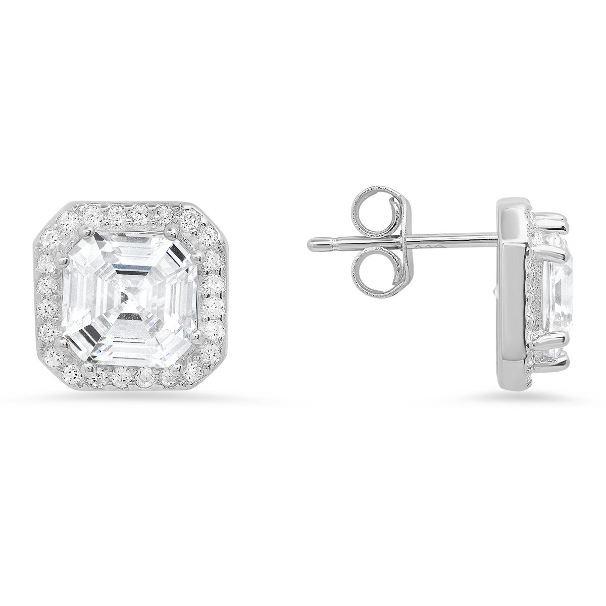 Sterling Silver Asscher-cut Halo Stud Earrings