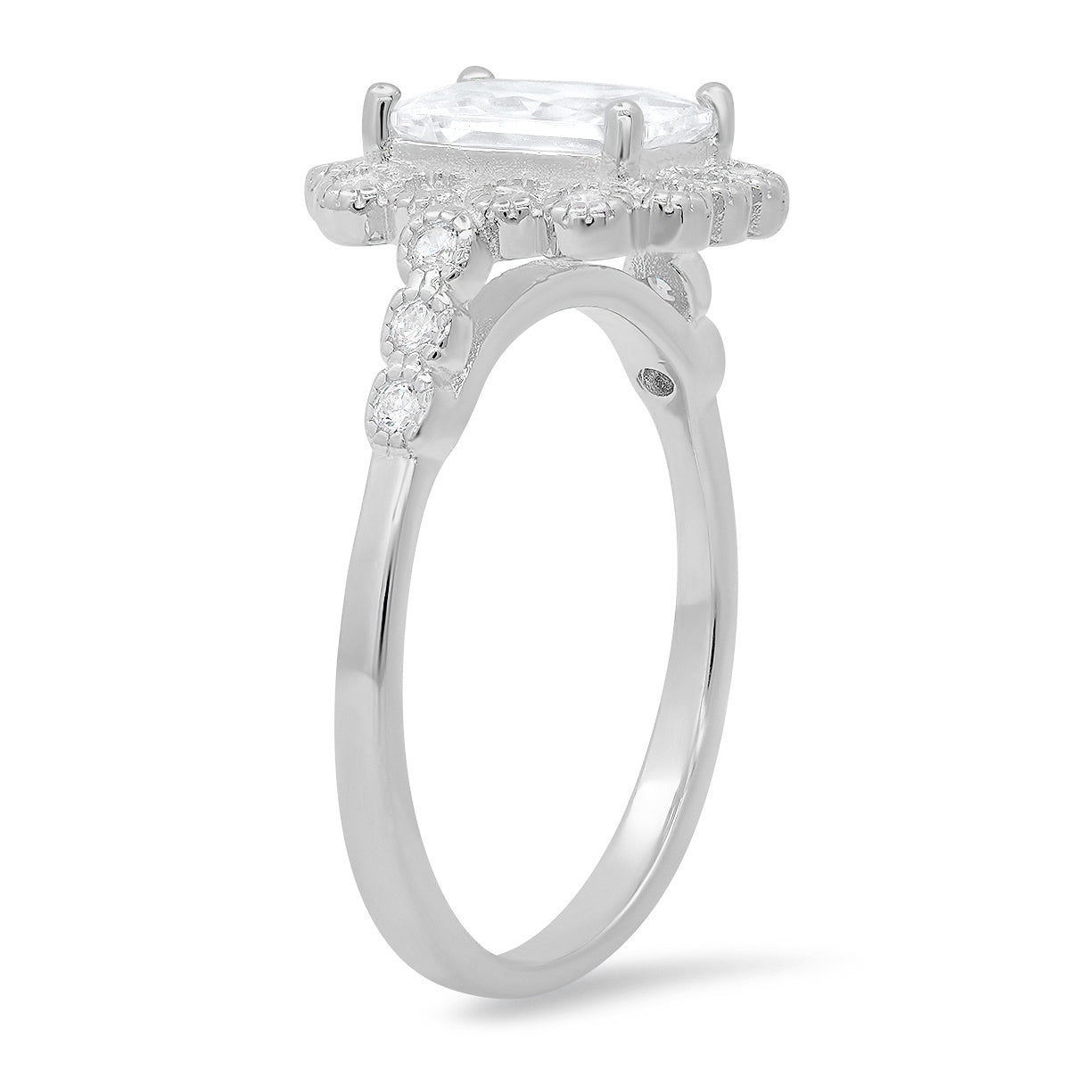 Sterling Silver Emerald-cut CZ Halo Floral Ring