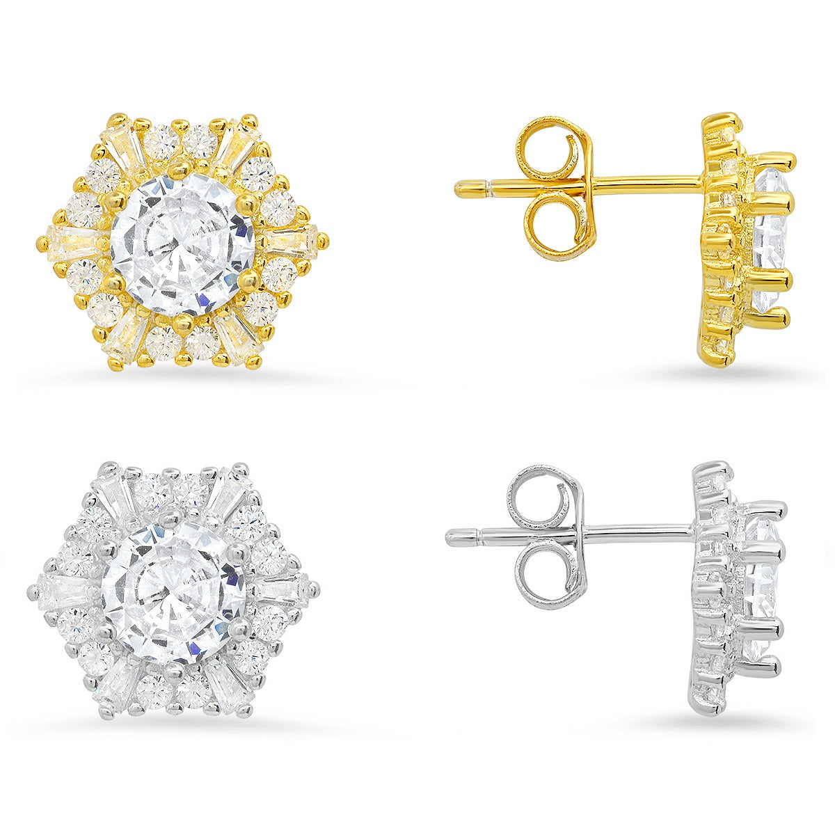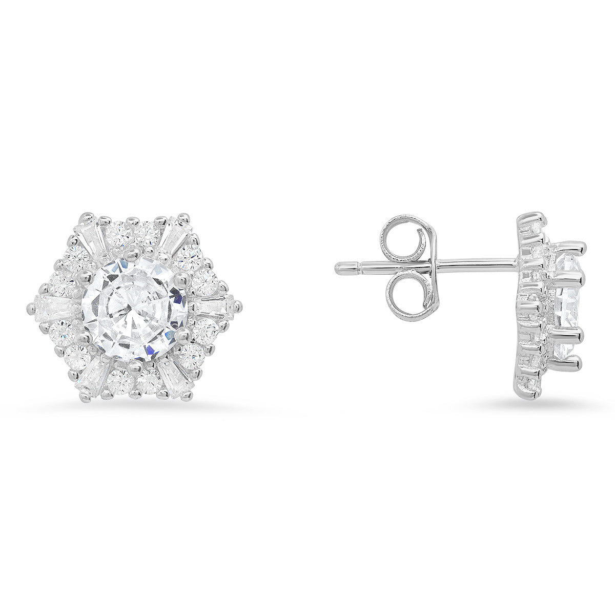 Sterling Silver Hexagon CZ Halo Stud Earrings