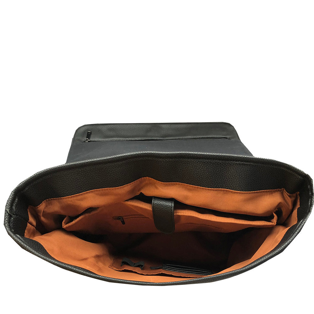 - Full front open pocket under flap – with snap closure