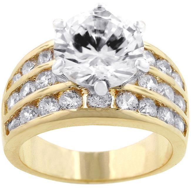 This ring is an absolute classic and it looks absolutely fabulous. The center stone is a whopping 5 carat simulated size set on rhodium prongs. The side shoulders boast another 2.5 carats worth of stones to make a 7.5 total carat weight cubic zirconia ring. Our two-tone and tri-tone process use 18k gold that electroplated coating the item with heavy layers of 18k yellow gold giving it that 14k hamiliton gold polished look. The silver tone is achieved by applying a heavy coating of genuine rhodium to the item giving is a lustrous silver tone high polish.