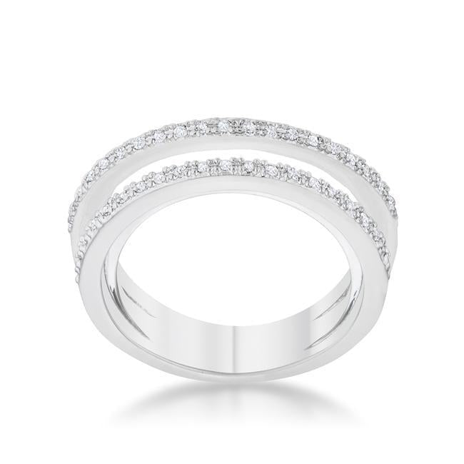 Clear stones accent a set of three CZ encrusted bands that intertwine for an elegant cocktail ring.