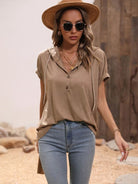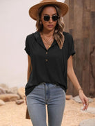 Half Button Hooded Short Sleeve Blouse