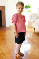 Kids Lovely Rose Ruffle Sleeve Side Slit Top