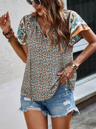 Printed Tie Neck Short Sleeve Blouse
