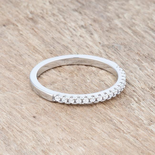 0.11ct CZ Rhodium Plated Classic Band Ring With Round Cut Cubic Zirconia In A Pave Setting