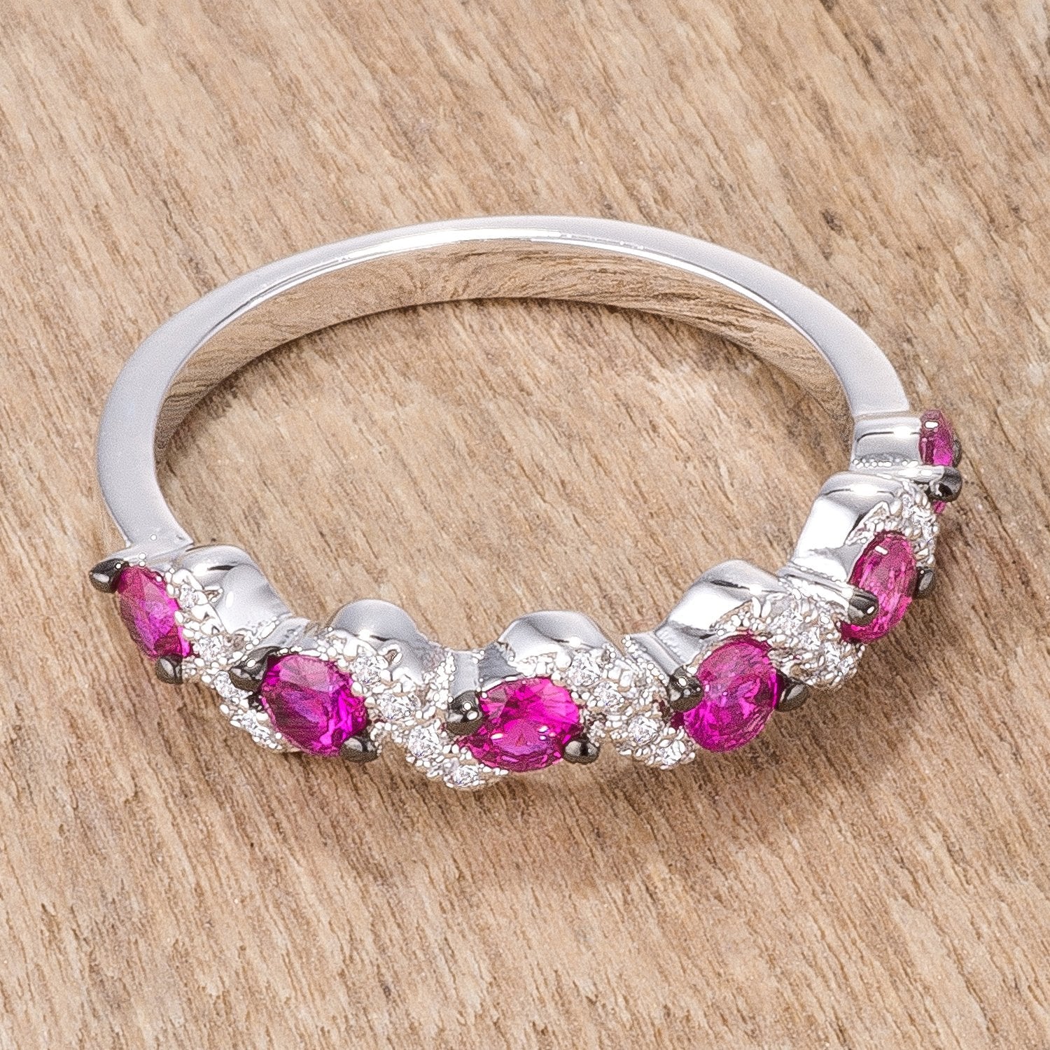 .18Ct Rhodium and Hematite Plated S Shape Fuchsia and Clear CZ Half Eternity Band